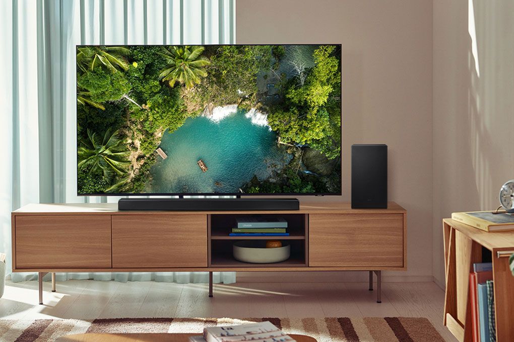 Loa Samsung được tích hợp 3.1 kênh tạo nên âm trầm mạnh mẽ, lan tỏa khắp phòng cho phép bạn thưởng thức trọn vẹn những bản nhạc chất lượng, chương trình giải trí hấp dẫn.