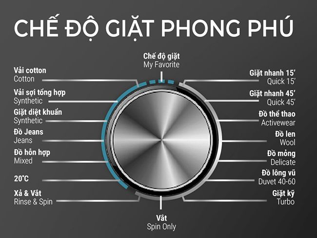 Bên cạnh đó, việc thiết kế bảng điều khiển song ngữ Anh - Việt, có nút xoay và màn hình hiển thị giúp người dùng dễ dàng sử dụng và lựa chọn các chế độ giặt mong muốn.