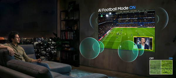 Với chế độ AI Football, bạn có thể xem bóng đá với các thiết lập hình ảnh và âm thanh được tối ưu riêng cho môn thể thao này. Công nghệ tối ưu bằng AI mang đến màu sắc rực rỡ hơn, độ tương phản sống động và lời bình luận trong trẻo - giúp bạn theo dõi từng đường chuyền, từng tiếng reo hò với độ rõ nét chuẩn chuyên nghiệp.