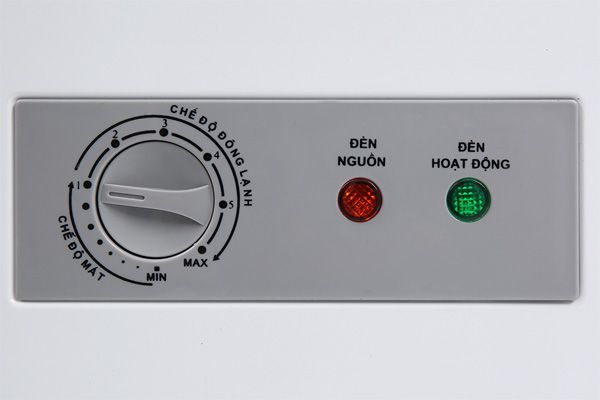 Cửa tủ có tay cầm đóng mở thuận tiện. Khi sử dụng bạn sẽ dễ dàng điều chỉnh nhiệt độ của tủ bằng nút điều chỉnh nằm phía trước tủ.