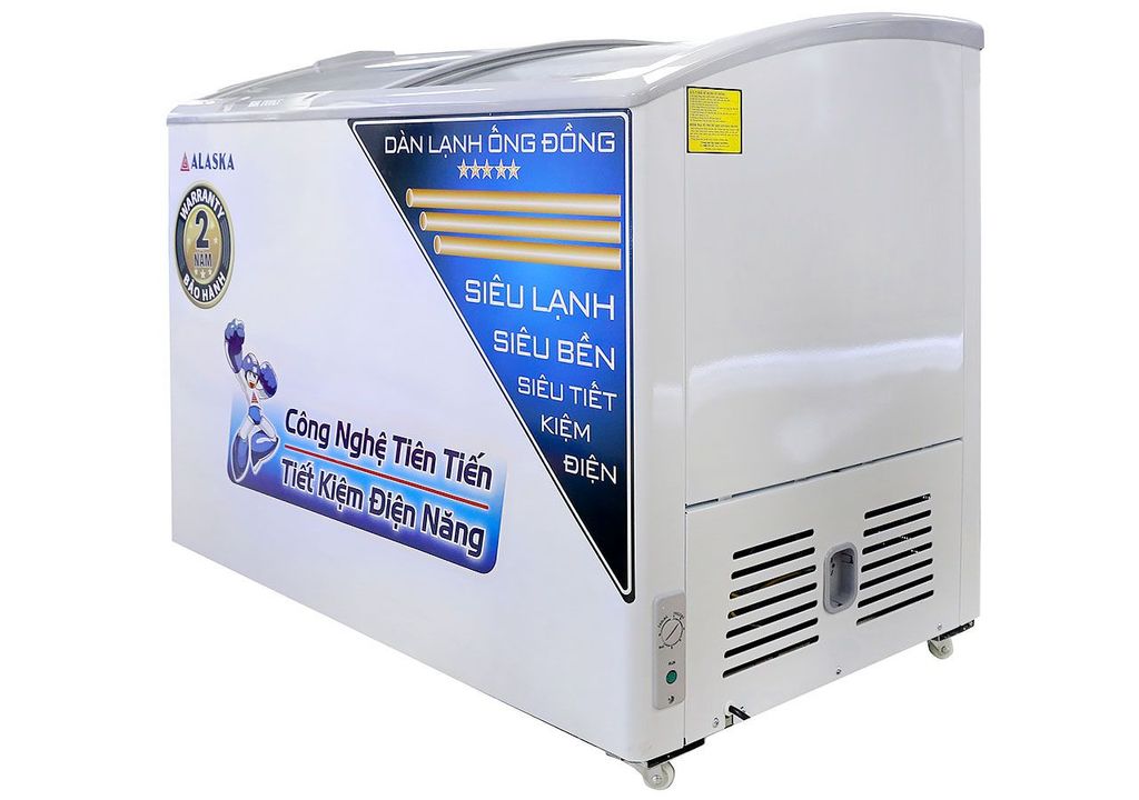 Tủ đông Alaska 400 Lít SD-401YC là model tủ đông kính cong dàn lạnh đồng của Alaska, với 1 ngăn đông rộng, 2 nắp kính lùa chịu lực giữ nhiệt tốt, dung tích 400 lít, phù hợp cho gia đình, siêu thị, nhà hàng, bách hóa, căng tin,…bảo quản các loại kem, thịt cá, đồ đông lạnh, hải sản,…là sản phẩm tủ đông 2 trong 1 vừa bảo quản vừa trưng bày tiện dụng.