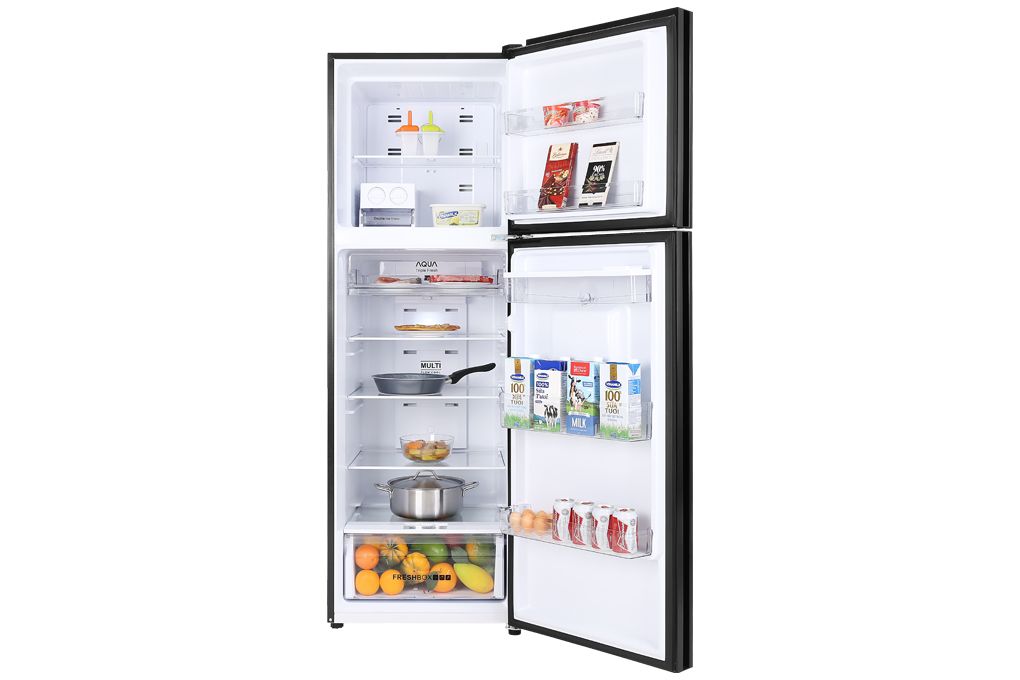 Tủ lạnh Aqua Inverter 344 lít AQR-T389FA(WBS) thiết kế hiện đại với mặt tủ thép tông màu đen sang trọng. Tay nắm ẩn tinh tế, thuận tiện khi sử dụng. Bảng điều khiển cảm ứng hiện đại đặt bên ngoài tiện lợi, có nhiều thiết lập về nhiệt độ và chức năng giúp thực phẩm được bảo quản trong tình trạng tốt nhất. Tủ lạnh 2 cửa Aqua bố trí ngăn đá trên truyền thống, phù hợp với thói quen của đa số người dùng. Dung tích sử dụng 344 lít đáp ứng nhu cầu bảo quản thực phẩm cho gia đình 4-5 thành viên.