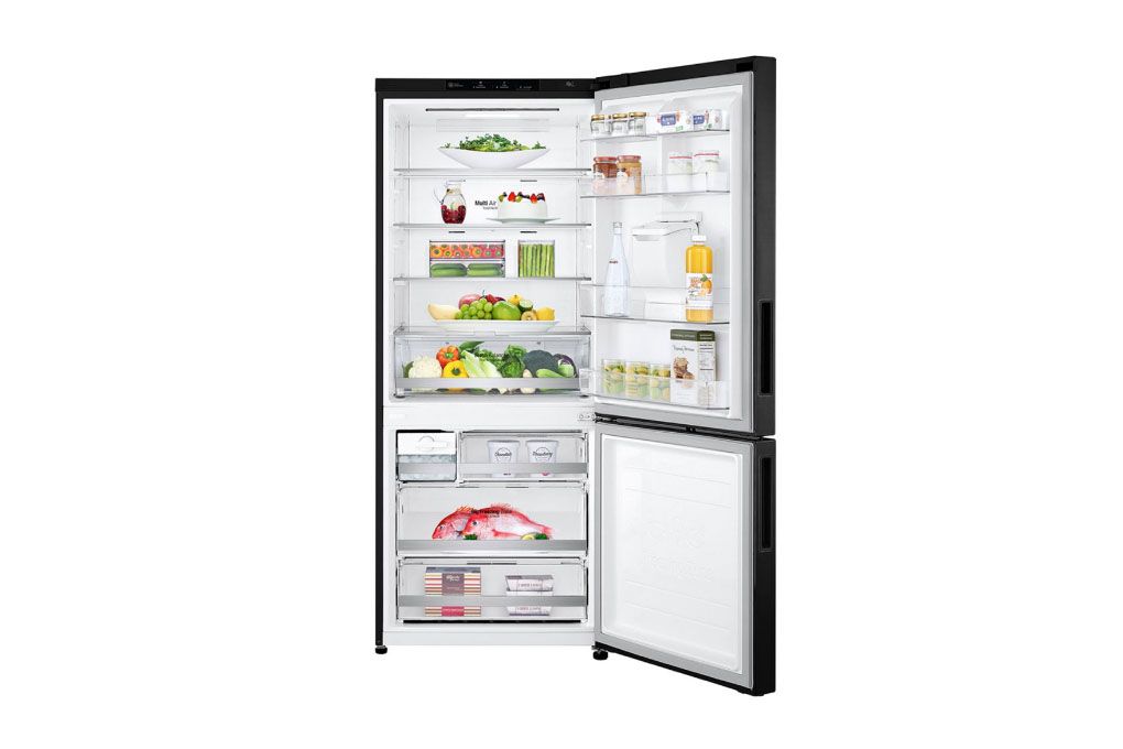 Tủ lạnh LG Inverter GR-D405MC thế hệ mới thiết kế ngăn đá dưới hiện đại. Phong cách thiết kế này tạo sự thoải mái, thuận tiện khi sử dụng nhờ khả năng dễ dàng quan sát, sắp xếp thực phẩm mà không cần cúi xuống nhiều. Thân tủ gam màu đen tạo điểm nhấn sang trọng, ấn tượng cho không gian bếp hiện đại của bạn. Tủ lạnh có kích thước lớn thích hợp với các căn bếp có không gian rộng rãi.