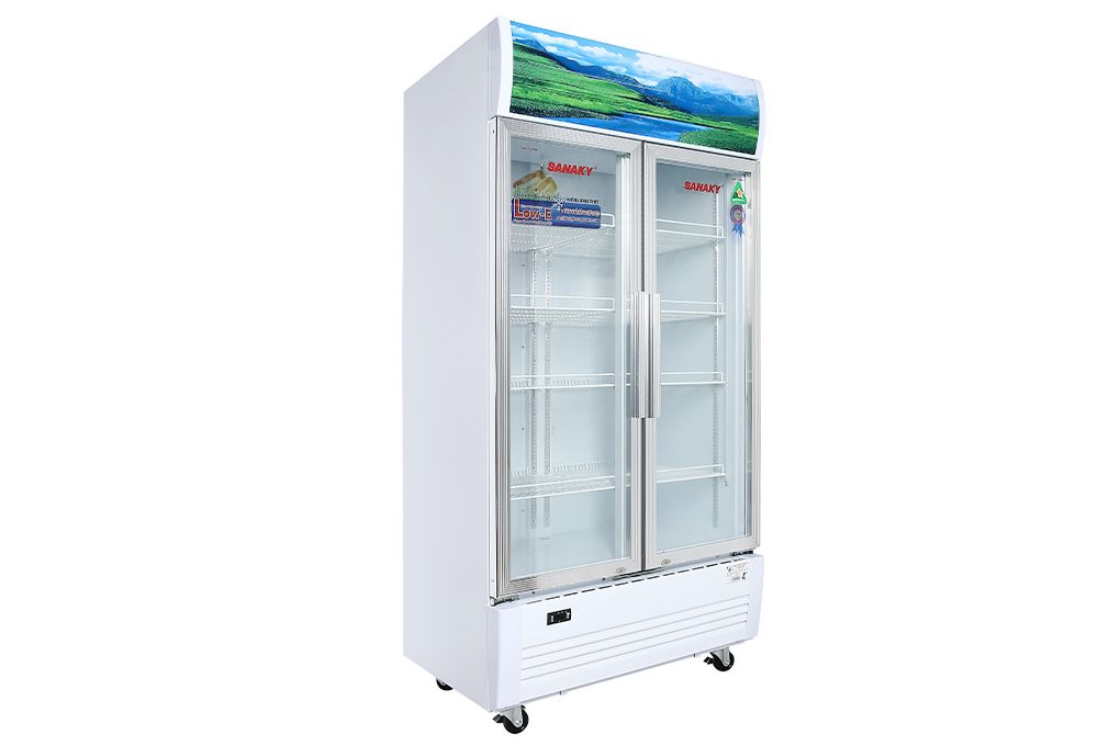 Tủ đông 2 cánh Sanaky sở hữu kiểu dáng đứng với dung tích 900 lít sẽ đáp ứng nhu cầu bảo quản thực phẩm, đồ uống số lượng lớn cho các cửa hàng kinh doanh, siêu thị.